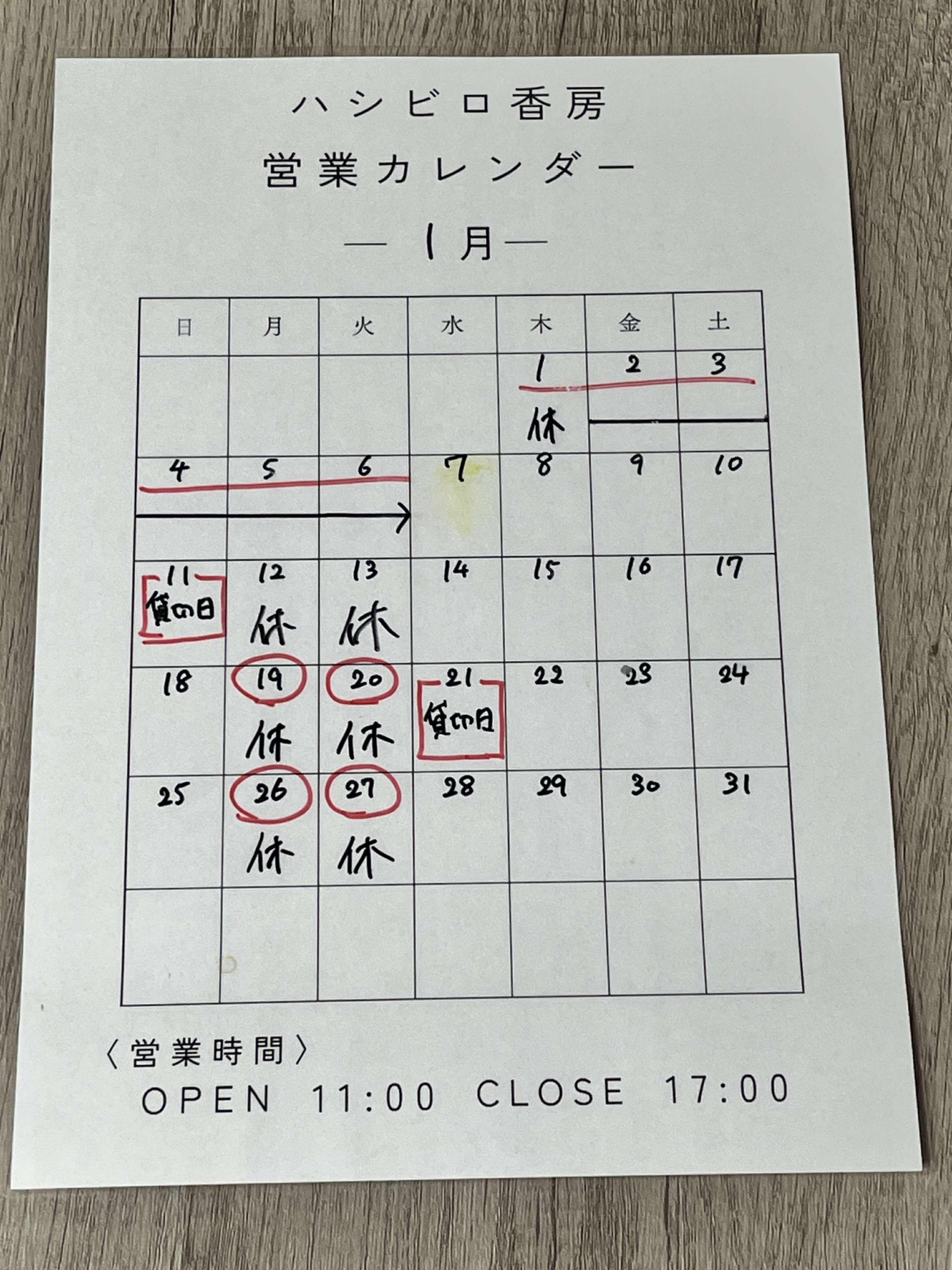 令和8年1月の営業日のお知らせ
