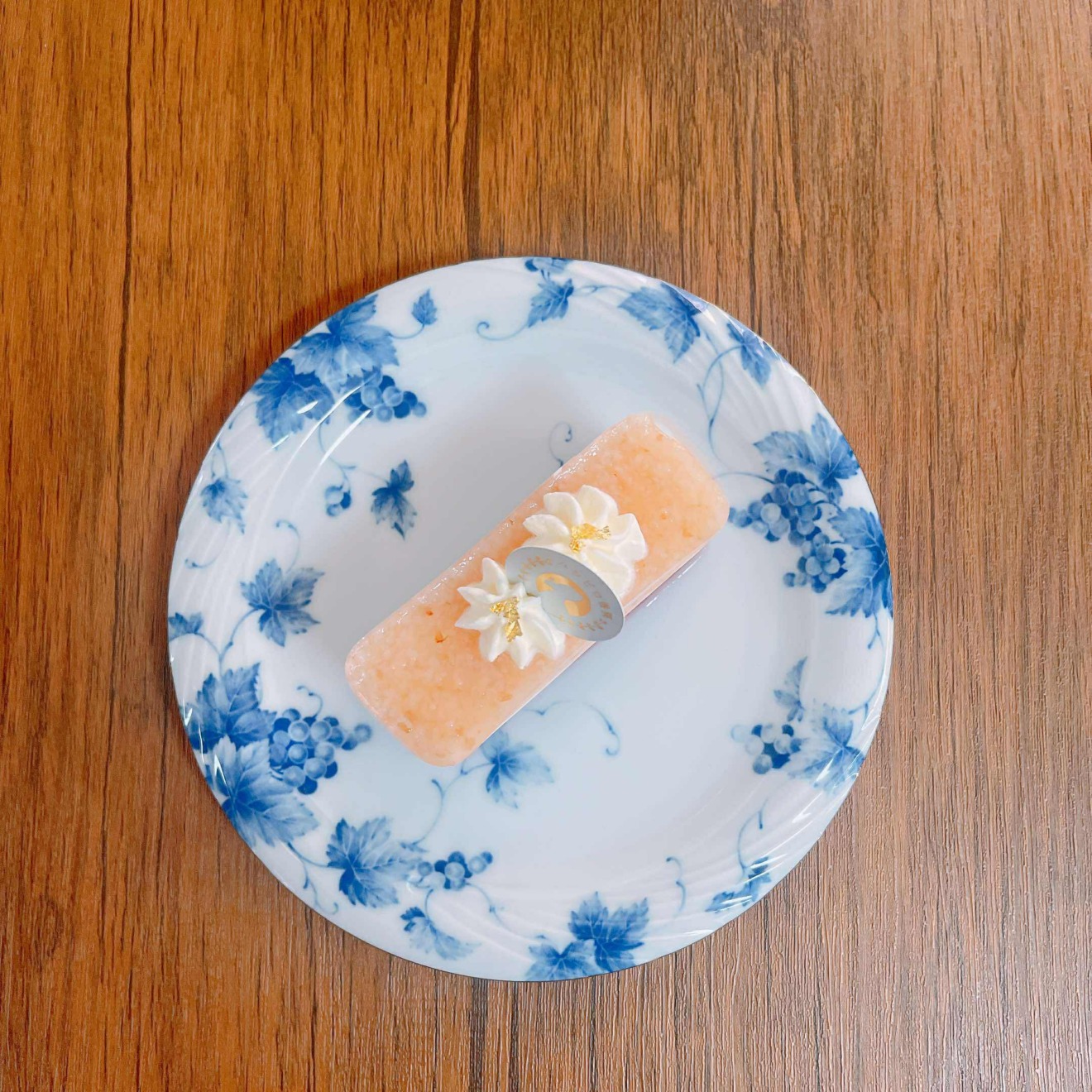 レアチーズと梅のお餅ゼリィの新食感。梅と2種類のチーズが甘味と酸味が相まって身体に沁みわたる和と洋の融合です。