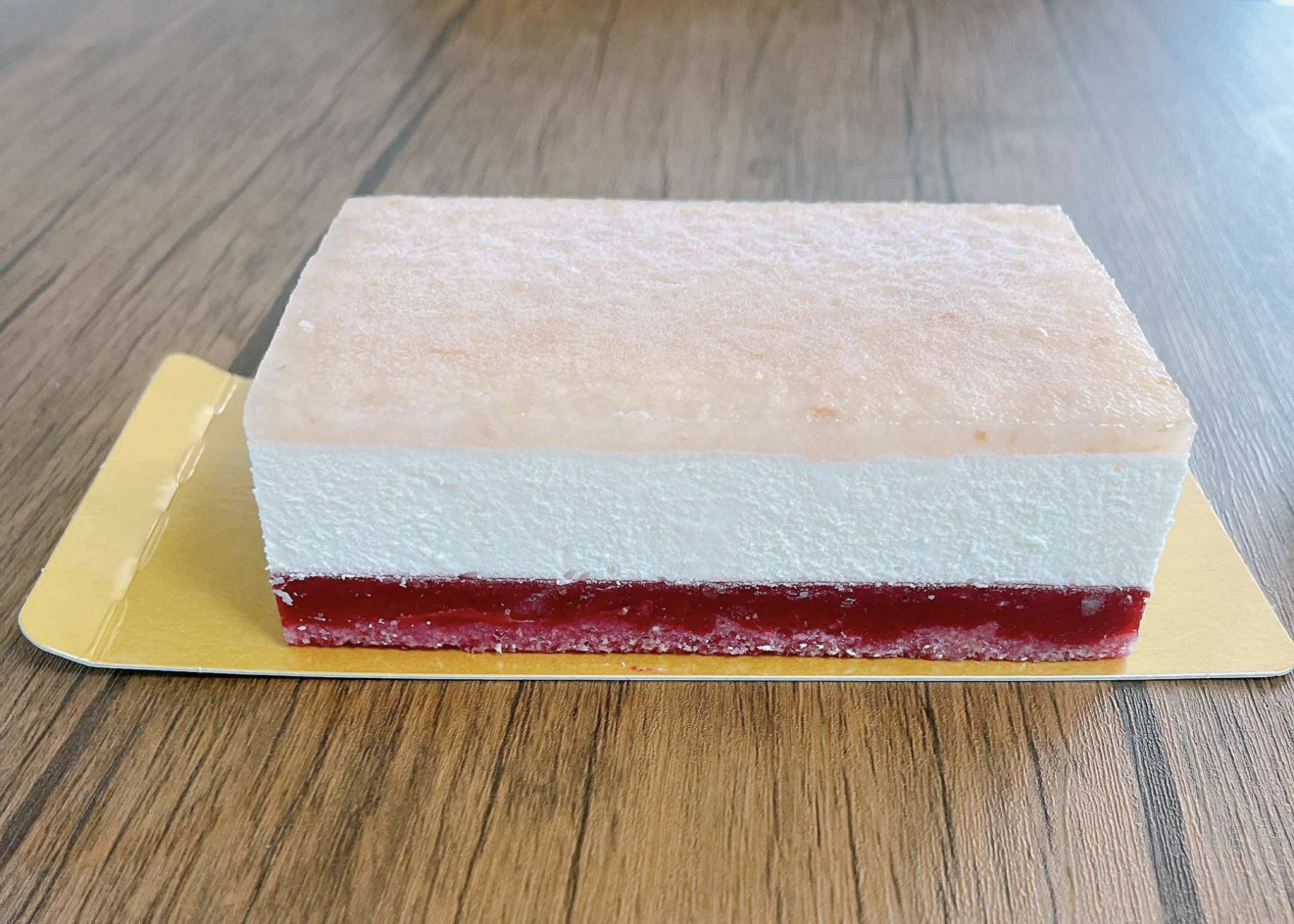 香房で作った自家製赤紫蘇シロップをスポンジに染み込ませました。
